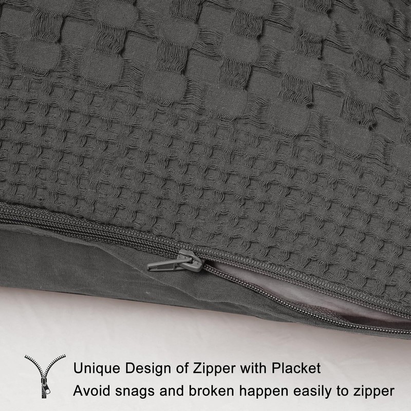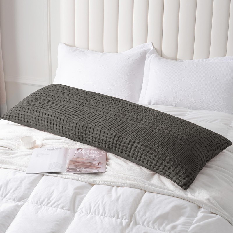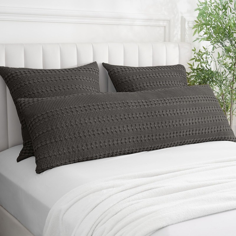 PHF 100% Cotton Waffle Body Pillowcase with Zipper, 1 Pack 20" x 54" Soft Skin-Friendly Pillow Sham, No Filling, Aesthetic Woven and Breathable Waffle Weave Body Pillow Cover for Bed, Charcoal Grey