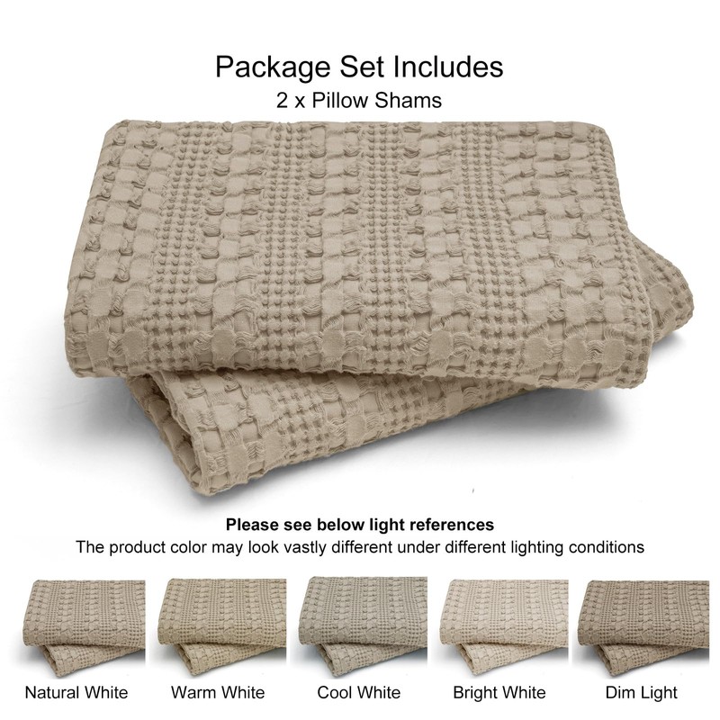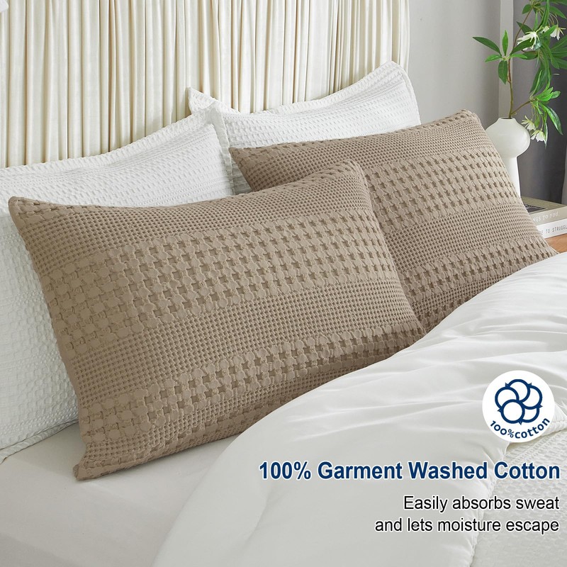 - Exquisite Waffle Weave Design: Classic yet stylish waffle weave design features three-dimensional, puffy and elegant appearance, brings casual sophistication and create a soothing retreat. Available in various colors, these pillow shams perfectly complement any home décor. Just decorate your comfortable pillows with our waffle weave pillowcase covers