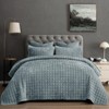 PHF Luxurious Velvet Quilt Set King Size -3PCS Super Soft with Square-Box Quilt Pattern, Breathable Quilted Bedspread, Giftable Coverlet, 108" x 92", Dusty Blue