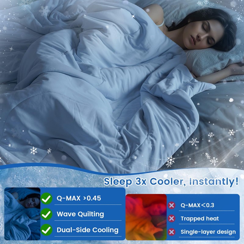 - Double-Side Cooling Design: Crafted with 100% Nylon cooling fabric on both surfaces, our cooling blanket actively delivers an immediate 3-5°C temperature drop on contact, regardless of which side is used. The double-sided cooling design allows both sides to absorb body heat, maintaining breathability and moisture absorption, preventing from sweating inside, making it a Must-Have summer blanket for hot sleepers and night sweats. With a Q-Max>0.45, PHF Arc-Chill tech brings you cooling atmosphere.