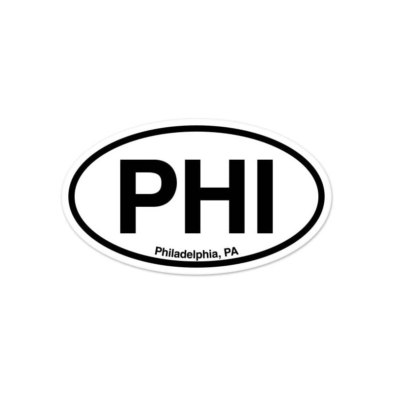 PHI Philadelphia PA Oval Vinyl Car Bumper Window Sticker 3" x 2"