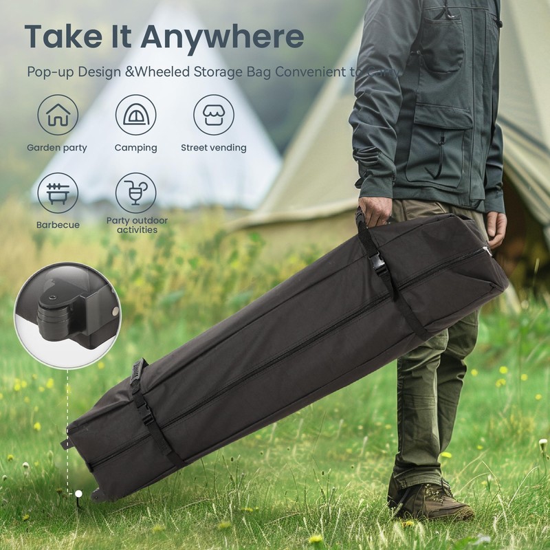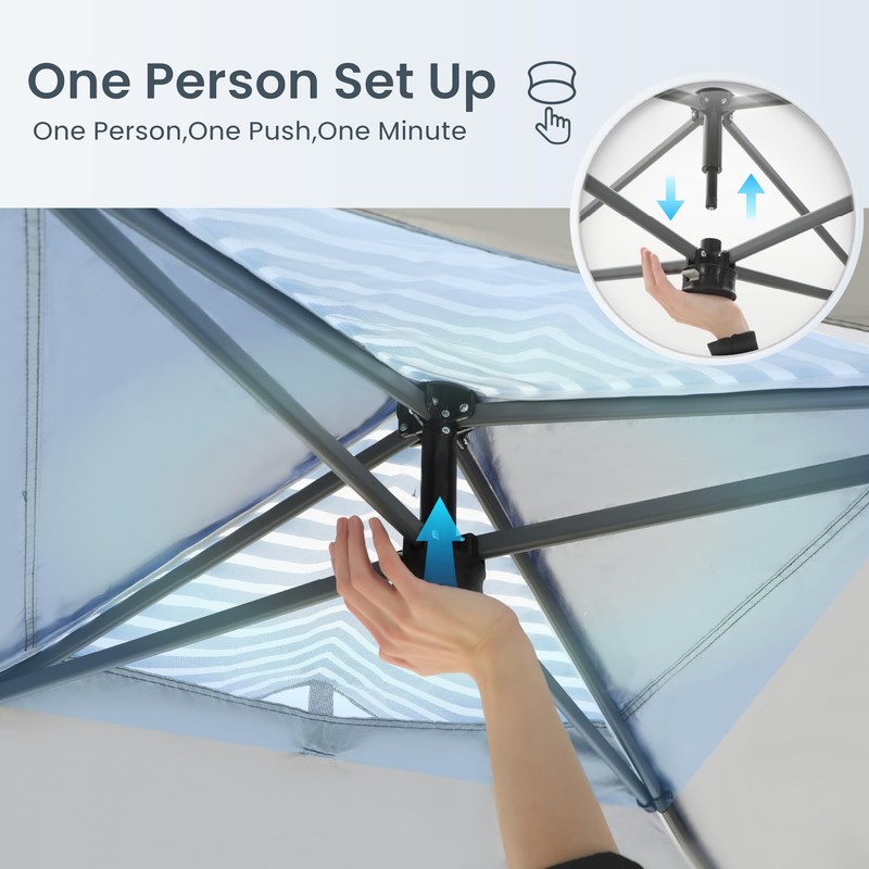 - 【One Person Set Up】: The patented central lock system allows one person to set it up in a matter of seconds without any tools. One-person setup and breakdown; just open the canopy, push the button, and adjust the height for instant shade in only a minute!