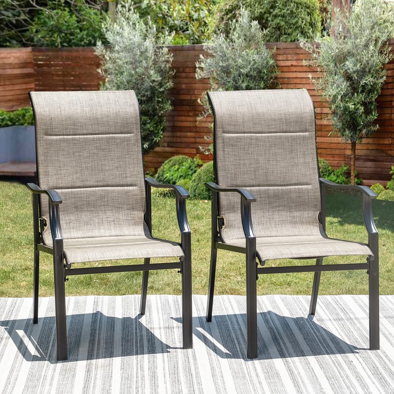 PHI VILLA Outdoor Dining Chairs Set of 2, High Back Textilene Fabric Padded Armchairs with E-Coated Steel Frame for Patio, Porch, Deck, Yard