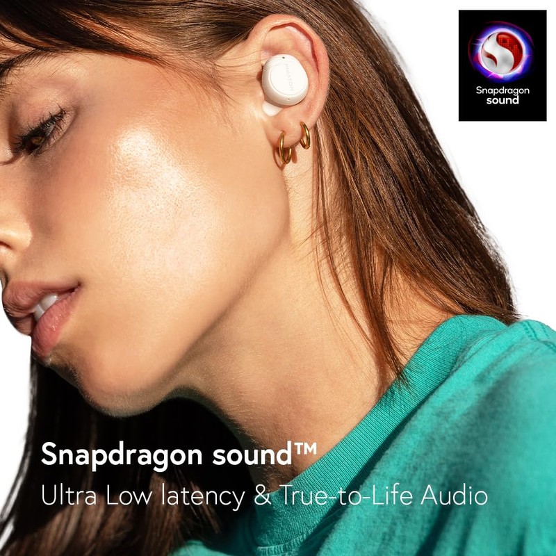 Ergonomically designed earbuds that fit snugly into the ear providing a stable fit without sacrificing sound quality. Qualcomm Snapdragon Sound ensures stable connection, long distance connectivity and lossless audio.