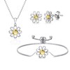 Elevate your look with this eye-catching 3pc Daisy Bracelet Set! Crafted with luxurious Zircondia Crystals, the delicate pieces are plated with Silver for a timeless shine. Hypoallergenic