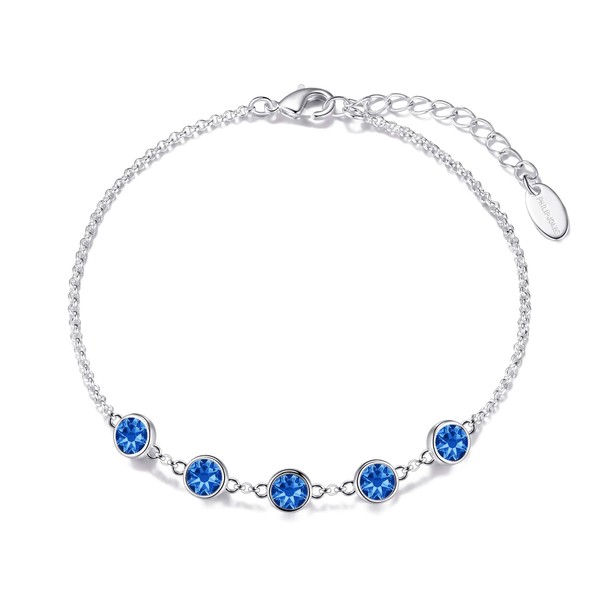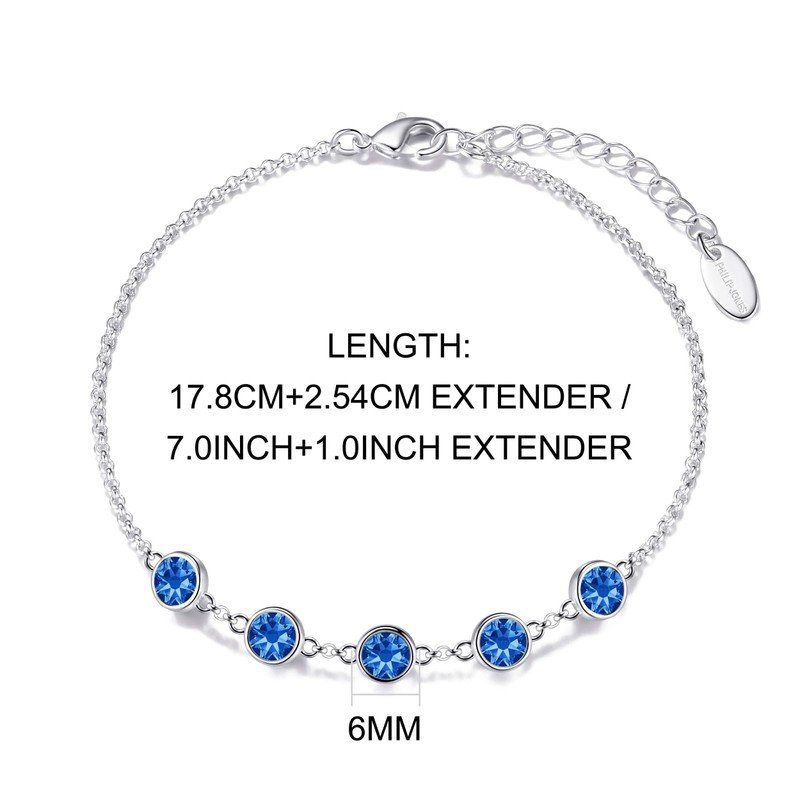 - Made with Trust. Dark Blue Crystal Chain Bracelet Created with Zircondia Crystals by Philip Jones. Buy with confidence with our 12-month manufacturer warranty and 30-day money back guarantee if you are not 100% happy with your Bracelet.