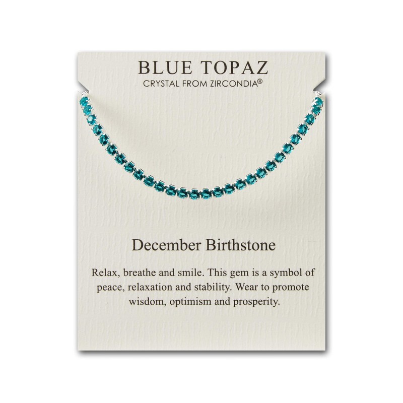 - Made with Trust. December Birthstone Friendship Bracelet with Blue Topaz Zircondia Crystals by Philip Jones. Buy with confidence with our 12-month manufacturer warranty and 30-day money back guarantee if you are not 100% happy with your Bracelet.