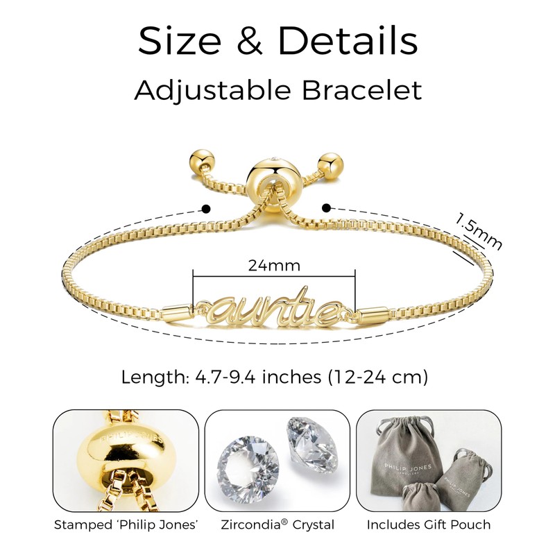 - Made with Trust. Gold Plated Auntie Bracelet Created with Zircondia Crystals by Philip Jones. Buy with confidence with our 12-month manufacturer warranty and 30-day money back guarantee if you are not 100% happy with your Bracelet.