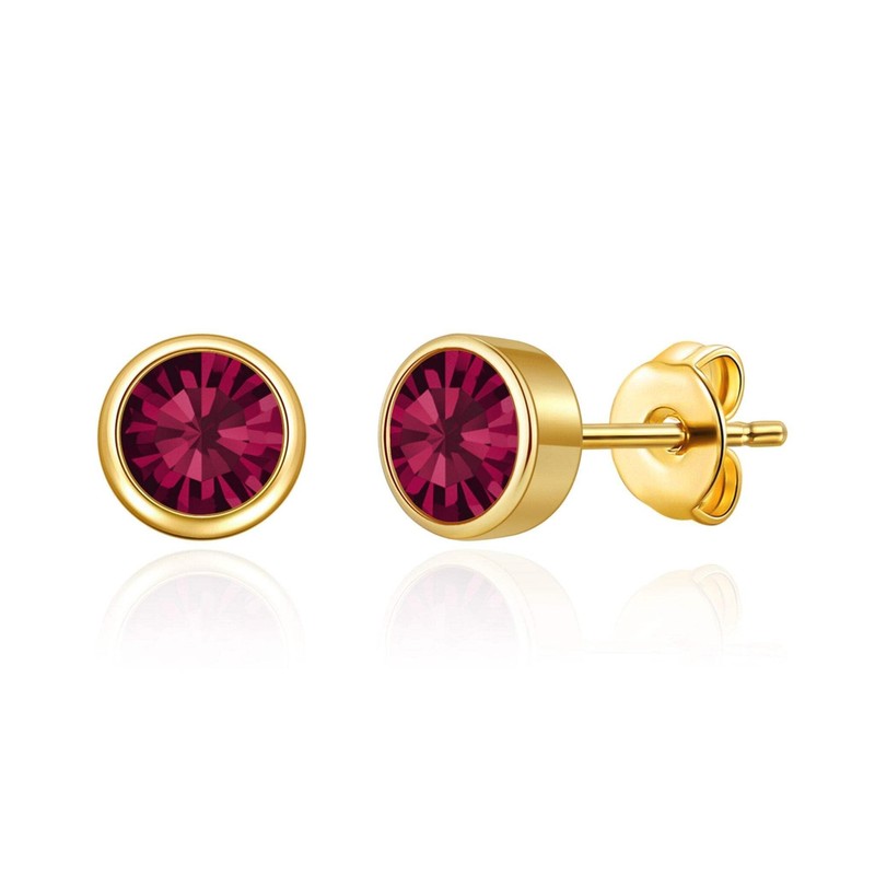 - Made with Trust. Gold Plated July (Ruby) Birthstone Earrings Created with Zircondia Crystals by Philip Jones. Buy with confidence with our 12-month manufacturer warranty with your Earrings.