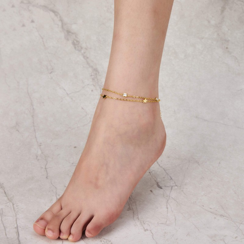 - Made with Trust. Gold Plated Layered Star Anklet Created with Zircondia Crystals by Philip Jones. Buy with confidence with our 12-month manufacturer warranty and 30-day money back guarantee if you are not 100% happy with your Anklet.