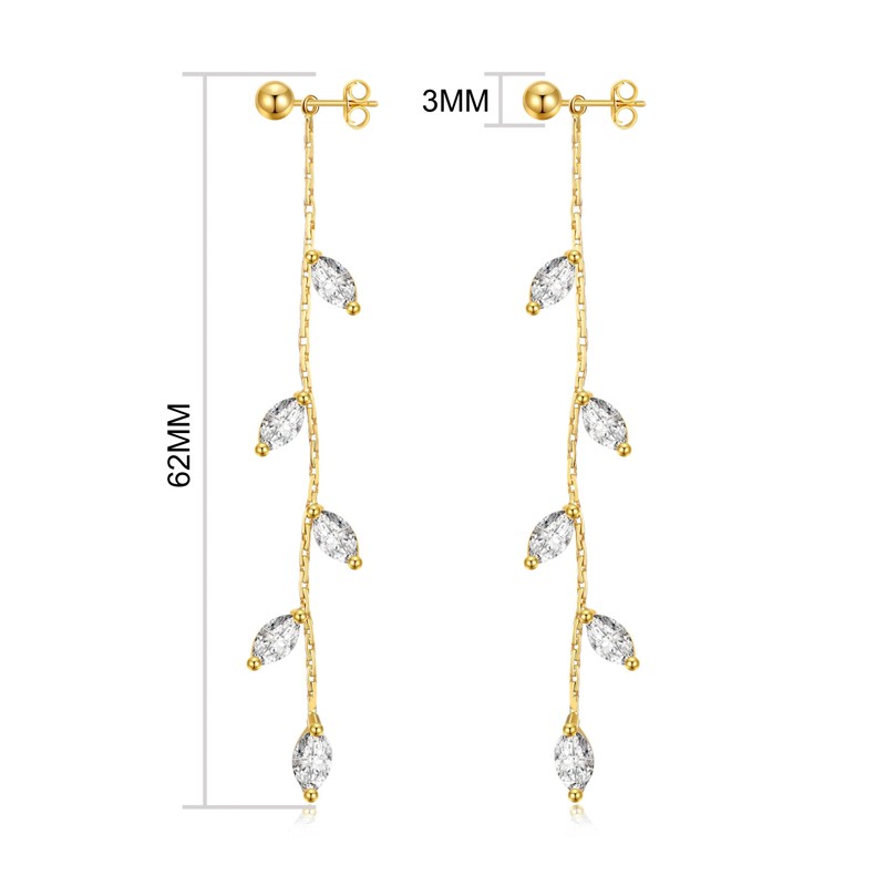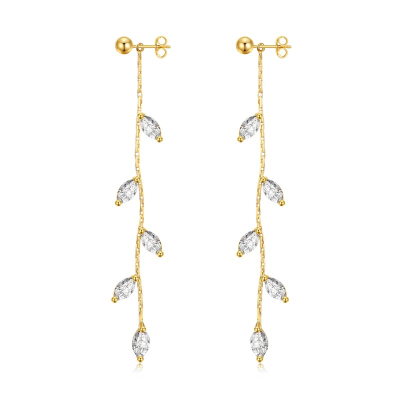 - Made with Trust. Gold Plated Leaf Dangle Earrings Created with Zircondia Crystals by Philip Jones. Buy with confidence with our 12-month manufacturer warranty and 30-day money back guarantee if you are not 100% happy with your Earrings.