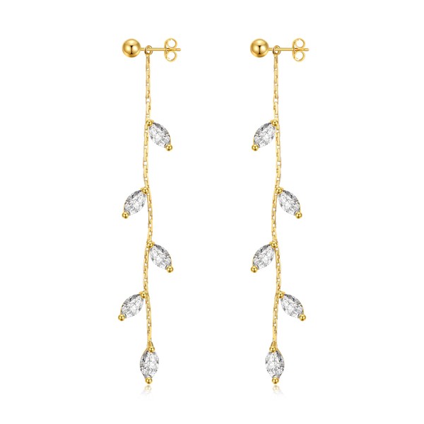 Gorgeously crafted with genuine Zircondia crystal marquise shapes, these Philip Jones gold plated dangle earrings have undeniable beauty and a luxe feel. Hypoallergenic and light on the ears, these earrings are perfect for all occasions!