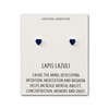 "Adorn yourself with these beautiful Lapis Heart Stud Earrings by Philip Jones, crafted with genuine gemstones and silver plating. Hypoallergenic for sensitive ears. Comes in a gift pouch with a quote card for a thoughtful touch. Embrace the calming and protective energy of lapis lazuli in a loving heart shape."