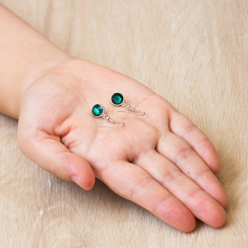 Indulge yourself with these silver plated, hypoallergenic May Birthstone drop earrings crafted from stunning Emerald Zircondia Crystals. The bezel-set 8mm crystals add eye-catching sparkle to any outfit, while the light 2g weight ensures easy and comfortable all-day wear. Presented with a beautiful gift pouch and quote card, these earrings make the perfect present.