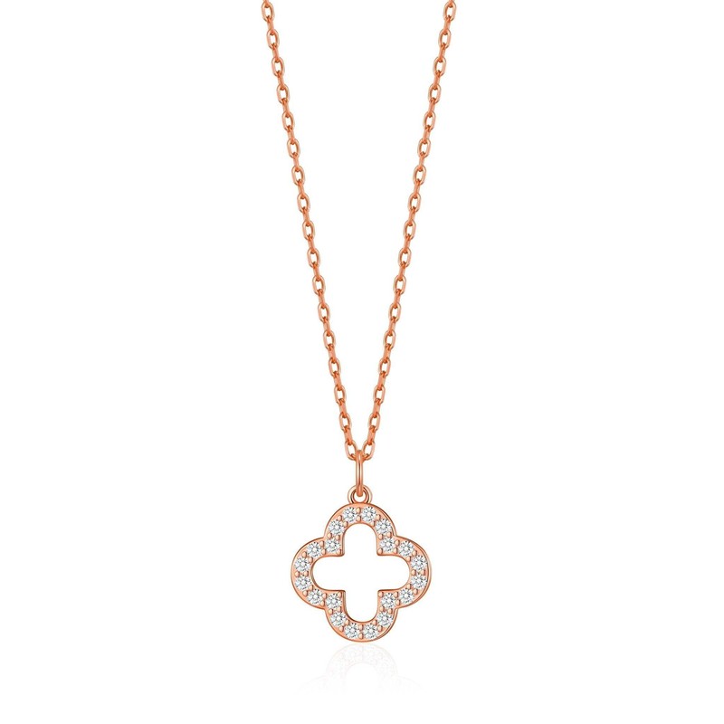 Philip Jones Rose Gold Plated Clover Necklace Created with Zircondia® Crystals