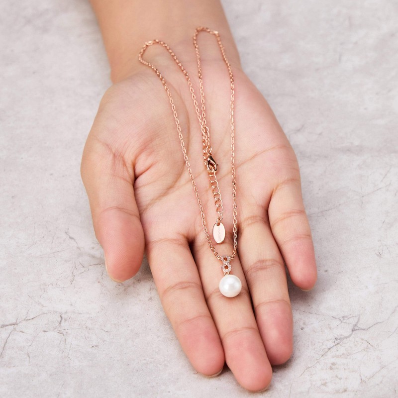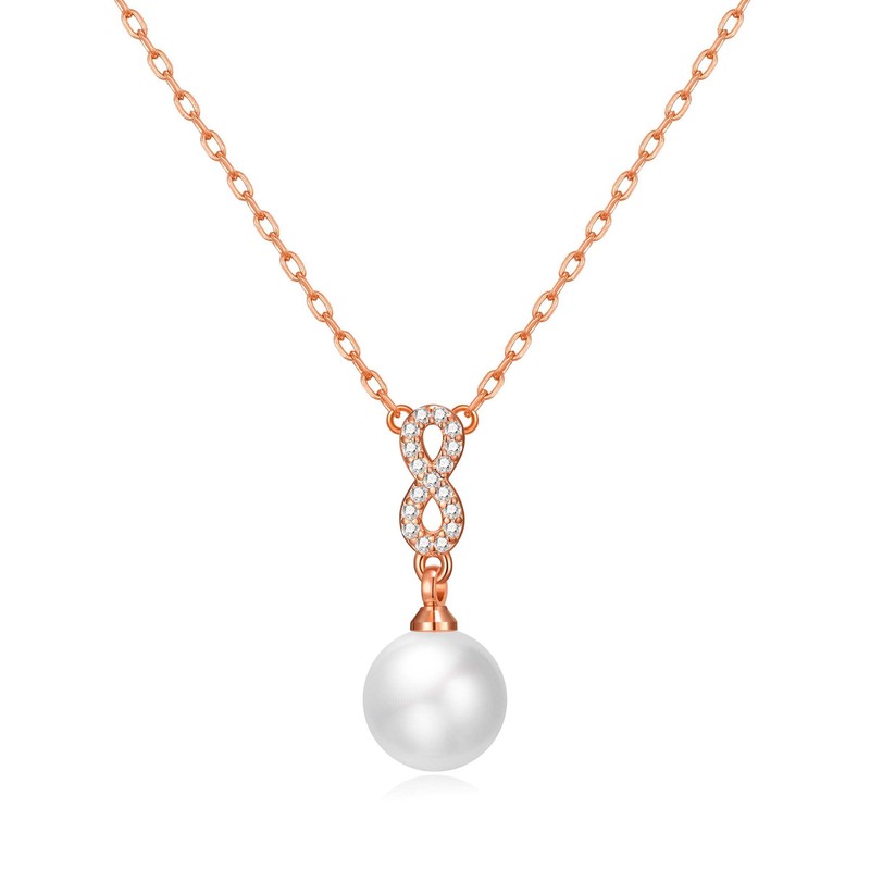 Get the best of both worlds with this Rose Gold Plated Infinity Pearl Drop Necklace! The exquisite design features stunning Zircondia Crystals and a lustrous Shell Pearl. Measuring 43cm with a 5cm extension chain, this necklace is perfect for every occasion. The gift pouch packaging adds a special touch to make it the perfect present.