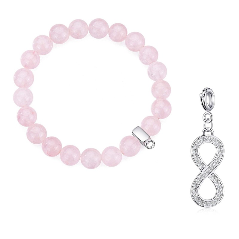 - Made with Trust. Rose Quartz Gemstone Bracelet with Infinity Charm Created with Zircondia Crystals by Philip Jones. Buy with confidence with our 12-month manufacturer warranty and 30-day money back guarantee if you are not 100% happy with your Bracelet.
