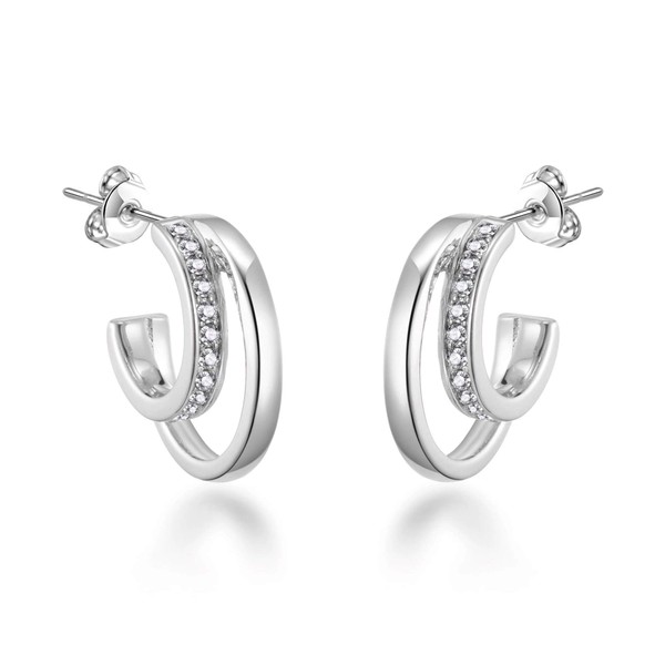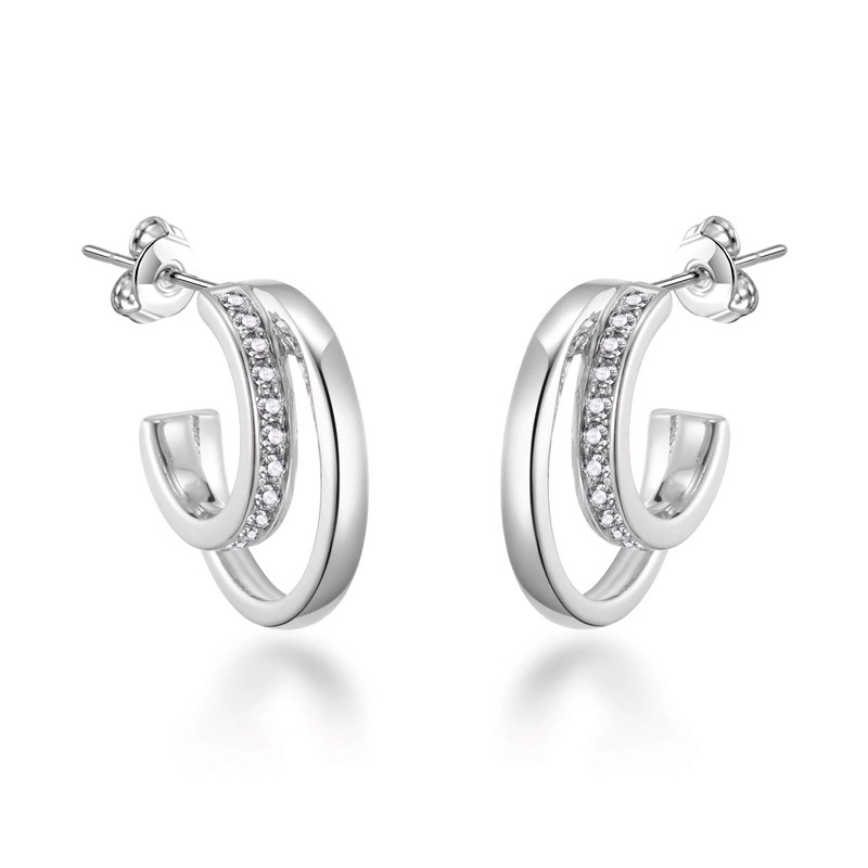 - Made with Trust. Silver Plated Open Double Hoop Earrings Created With Zircondia Crystals by Philip Jones. Buy with confidence with our 12-month manufacturer warranty and 30-day money back guarantee if you are not 100% happy with your Earrings.