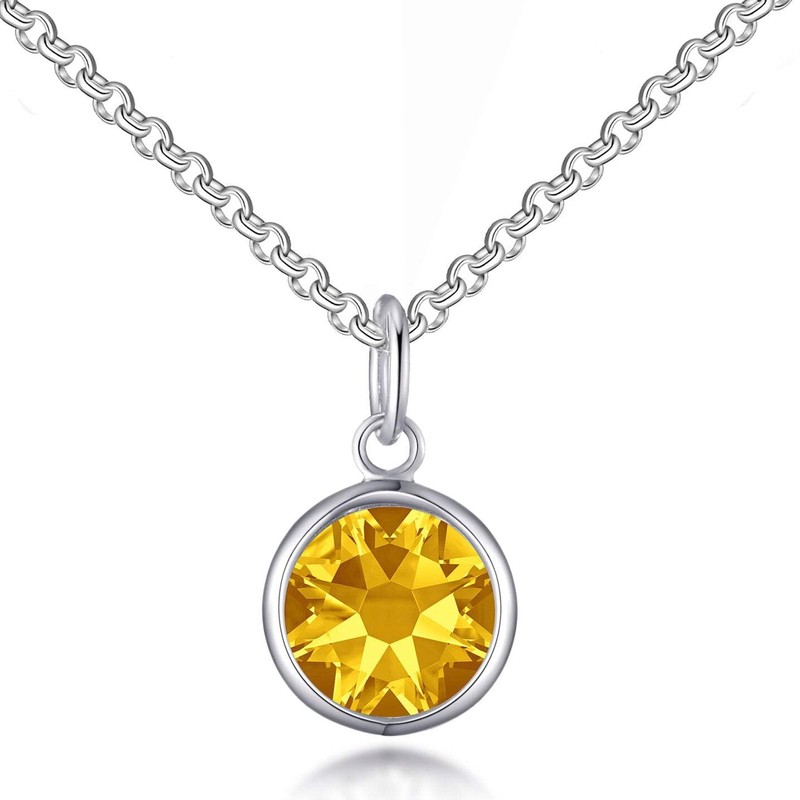 - Made with Trust. Yellow Crystal Necklace Created with Zircondia Crystals by Philip Jones. Buy with confidence with our 12-month manufacturer warranty and 30-day money back guarantee if you are not 100% happy with your Necklace.