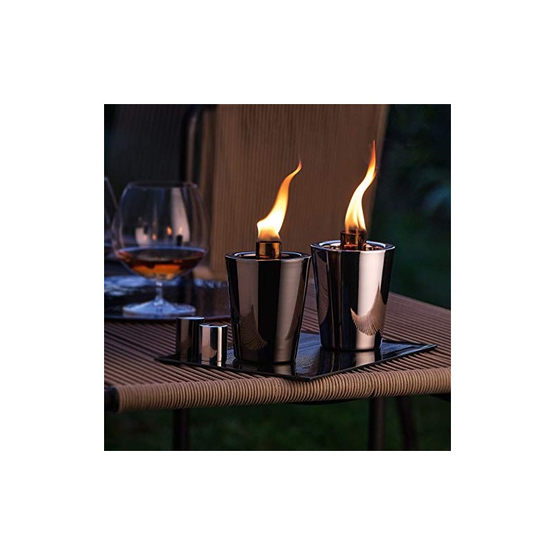 Philippi - Tarcia Table Torch - Small Table Fire for Balcony or Patio - Polished Stainless Steel - Silver