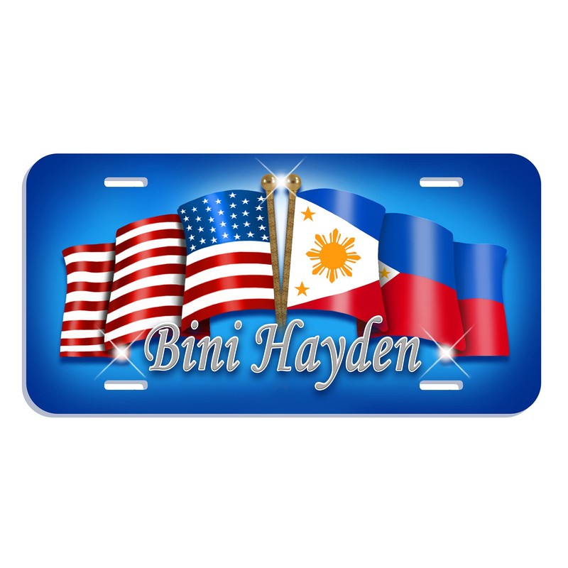 Philippine USA Unity Flags Auto License Plate Personalize Filipino American