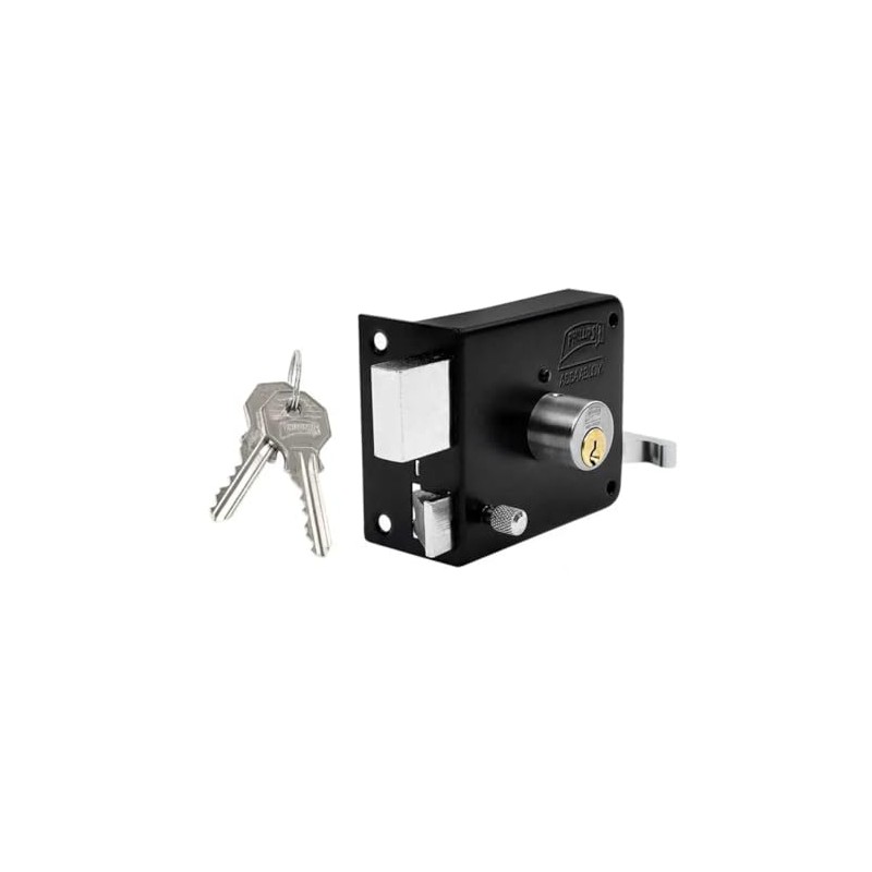 - Cerradura de sobreponer para puertas abatibles metálicas y/o de madera.