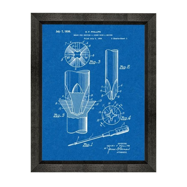 Phillips Head Screwdriver Patent Art Blueprint Print in a Beveled Black Wood Frame (5" x 7") M10117