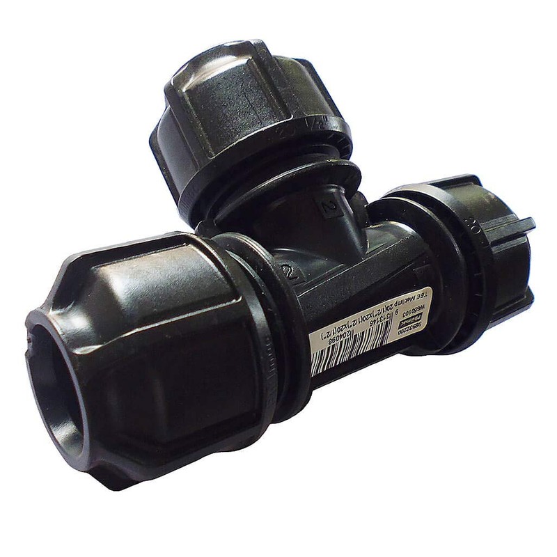 Philmac 3G Metric/Imperial plastic Tee compression fittings for MDPE pipe