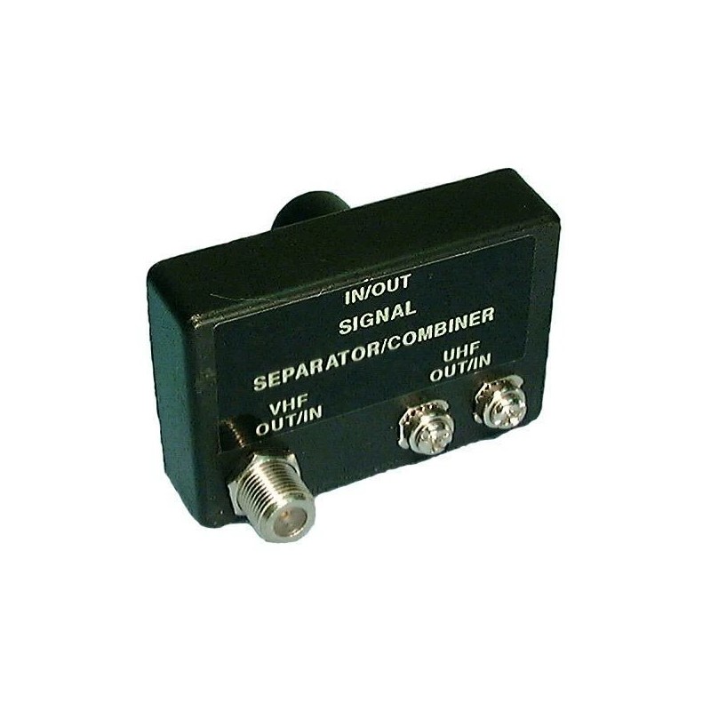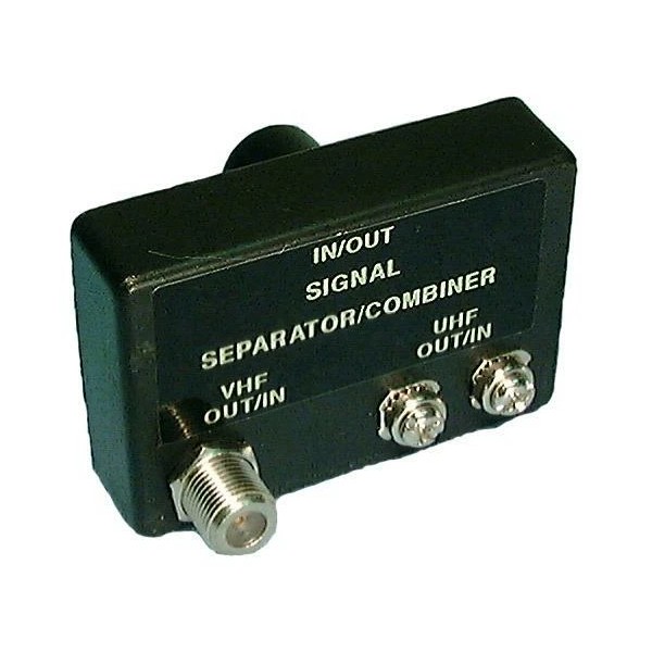 - Separates or Combines the Signal into Either a Single Push-On 75 "F" Type Connection to One 75 Ohm "F" Female & one 300 Screw Terminal UHF and VHF Signals