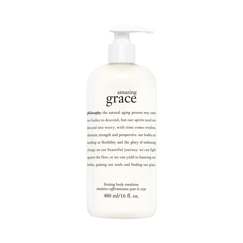 Infused with the amazingly clean, beautifully feminine scent of philosophy's bestselling amazing grace fragrance, this firming body emulsion is an award- winning moisturizer for dry skin. includes an antioxidant and firming ingredient to help skin feel more toned. featuring notes of bergamot, muguet blossoms, and musk. enriched with shea butter and natural oils, like olive and macadamia.