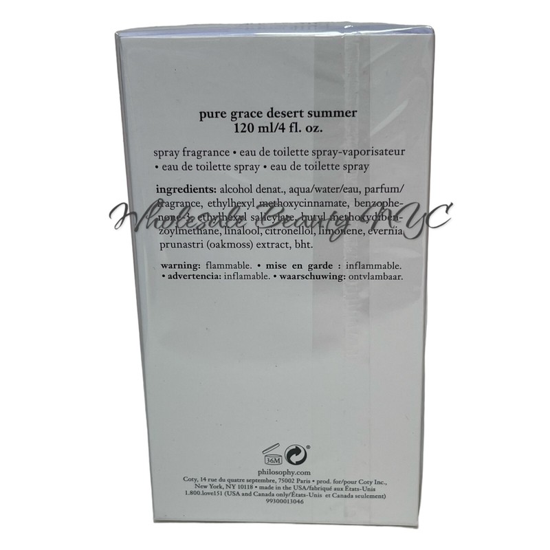 Philosophy Pure Grace Desert Summer Eau de Toilette Spray 4 Oz/120 ml New in Box
