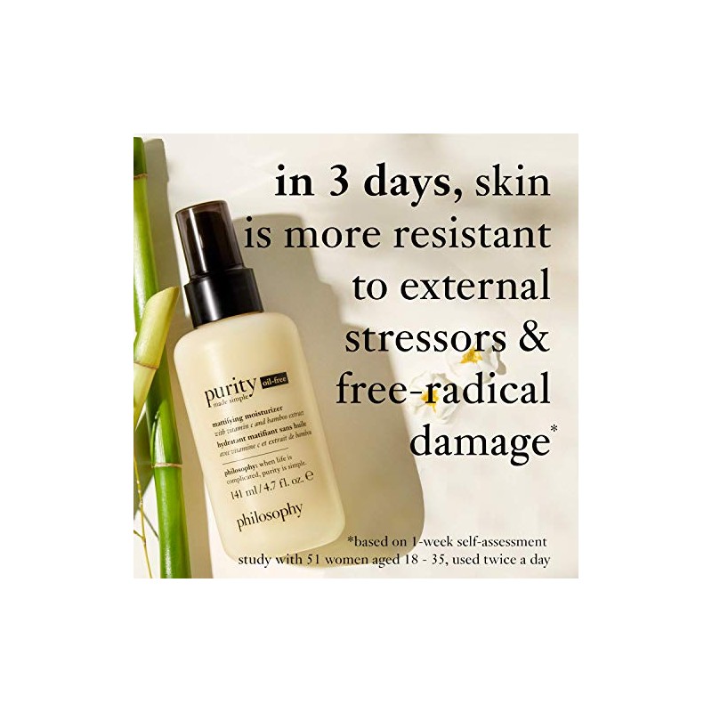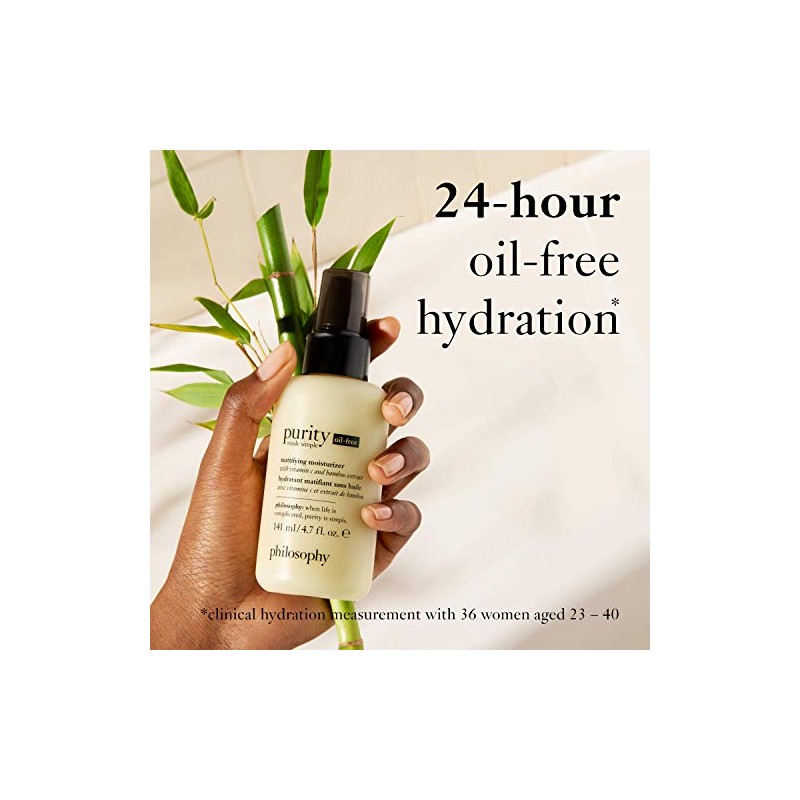 formulated with bamboo extract, this oil-free mattifying moisturizer controls excess oil and shine. perfect for combination-to-oily skin types, skin is left with a healthy matte look all day with a less-visible appearance of pores. After 1 day: • skin's hydration is maintained for 24-hours** After 3 days: •95% reported the appearance of excess oil on skin was reduced, and skin was not over-dried* •89% reported their skin felt matte and balanced* •86% reported their skin looked healthier* ----------------------------------------- *1-week self-assessment with 102 women aged 18 – 35, used twice a day ** clinical hydration measurement with 36 women aged 23 – 40