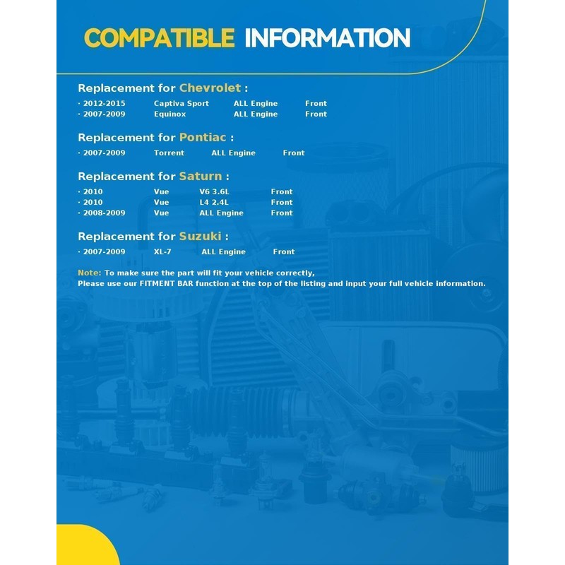 - [Perfect Fitment]: Compatible with Pontiac Torrent 2007-2009, Front Left and Right, Driver and Passenger Side