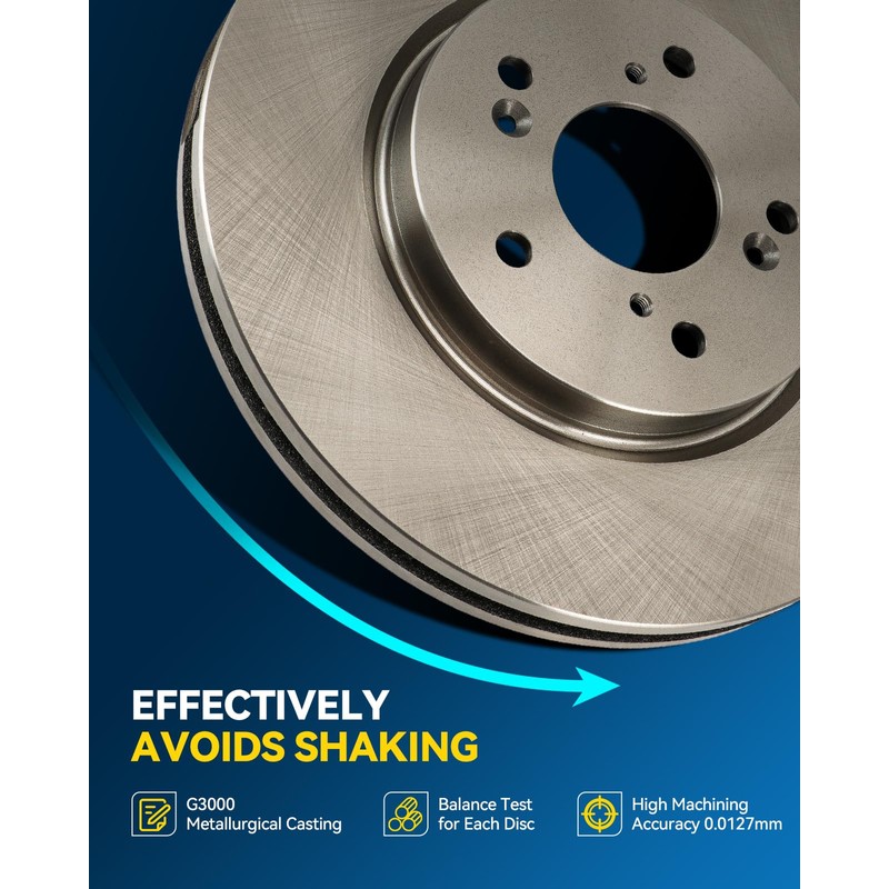 - [High quality material]:G3000 metallurgy and metallic coating of brake discs can effectively prevent rust and corrosion, extending the lifespan.
