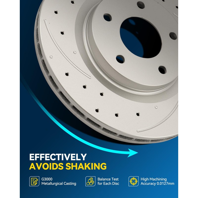 - [High quality material]:G3000 metallurgy and metallic coating of brake discs can effectively prevent rust and corrosion, extending the lifespan.