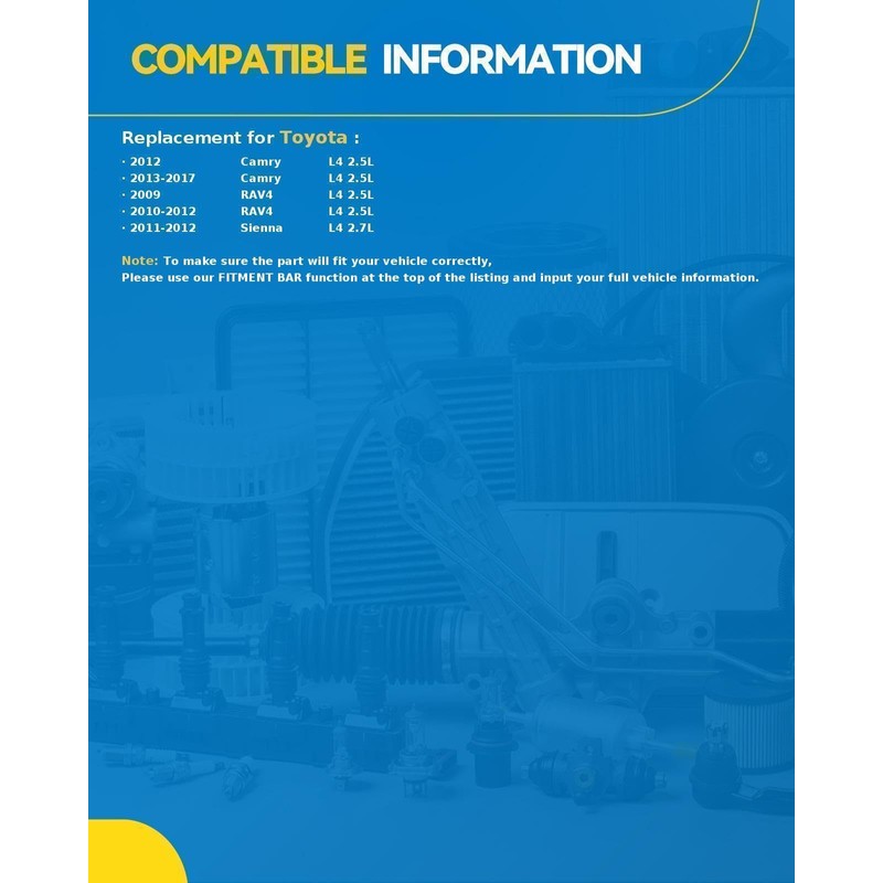 - COMPATIBILITY: AC Compressor replacement to 158367, and direct replacement for Toyota Camry 2012-2017 2.5L, for Toyota RAV4 2009-2012 2.5L, for Toyota Sienna 2011-2012 2.7L