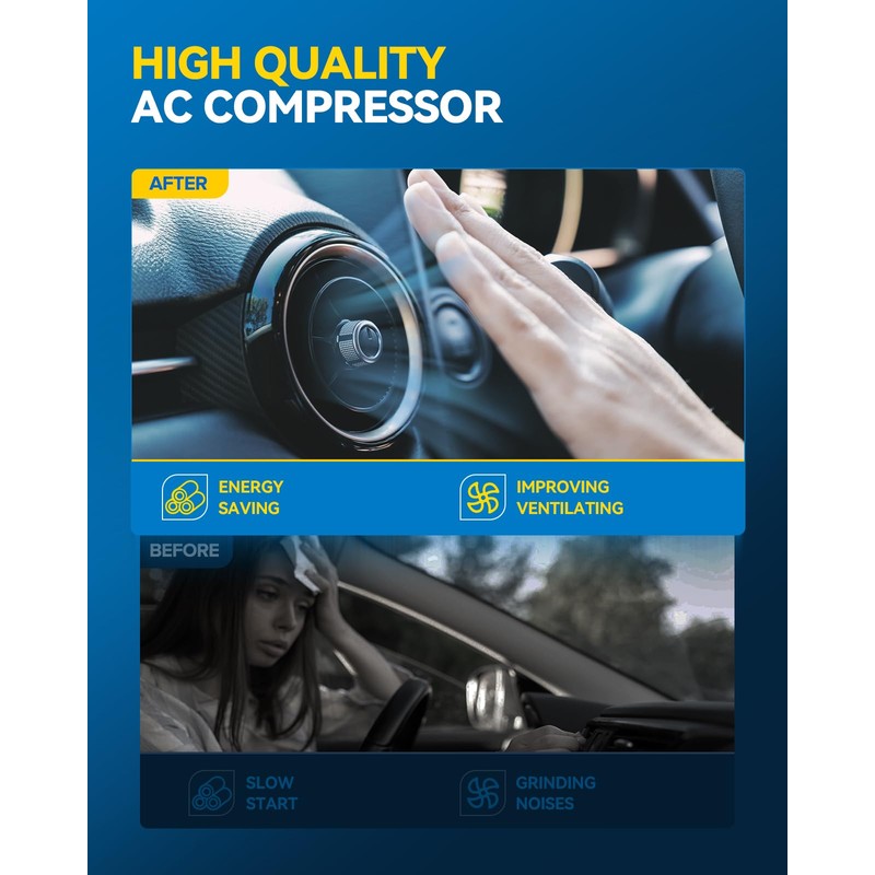 - LOW NOISE & LOW FUEL CONSUMPTION: AC compressor works excellent and has low noise with a better experience. With a lower load factor, low power will be input when driving at high speed, which increases fuel economy and makes operation smoothly
