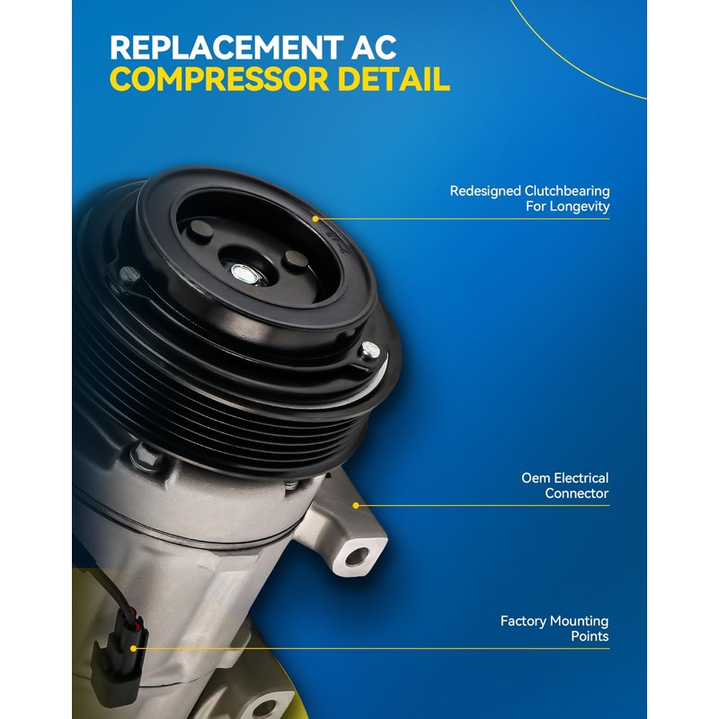- STRONG COOLING FUNCTION: The auto ac compressor can provide sufficient pressure, which increases power force and decreases engine load. It dramatically improves the cooling function: features as high and stable efficiency, safety, and reliability