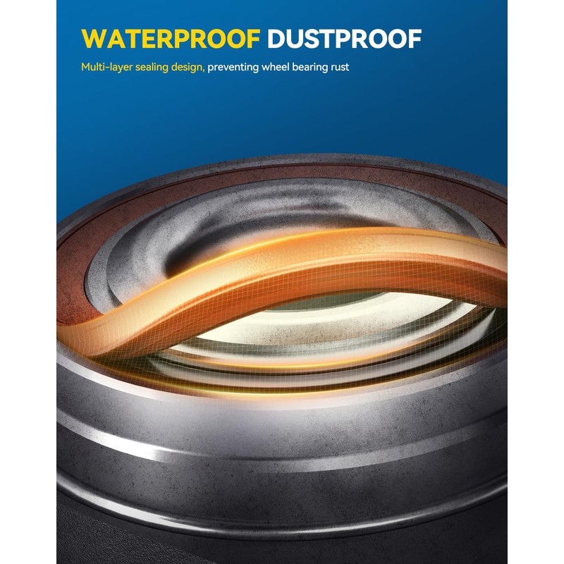 - Long Lifespan: The brand-new wheel hub assemblies and studs feature a corrosion-resistant surface finish, ensuring extended bearing life. With an advanced seal design and triple oil seals, they deliver lasting performance while reducing noise and vibration. The enhanced sealing also effectively blocks moisture and contaminants.