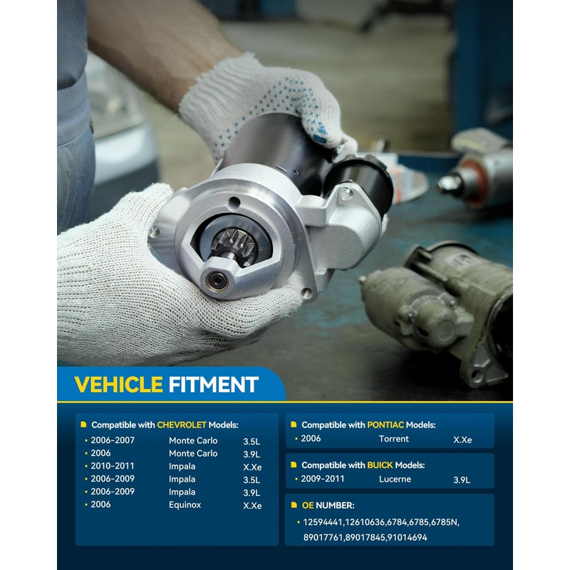 PHILTOP Automotive Starter Compatible with 2006-2011 Impala, 2009-2011 Lucerne, 2006 Equinox, Torrent, 2006-2007 Monte Carlo9 Tooth for 6785N