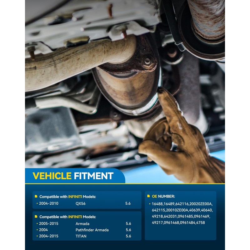 - Vehicle Fitment: PHILTOP Direct-Fit Catalytic Converter Compatible with Nissan, INFINITI TITAN 5.6L 2004-2015, Armada 5.6L 2005-2015, QX56 5.6L 2004-2010, Pathfinder Armada 5.6L 2004