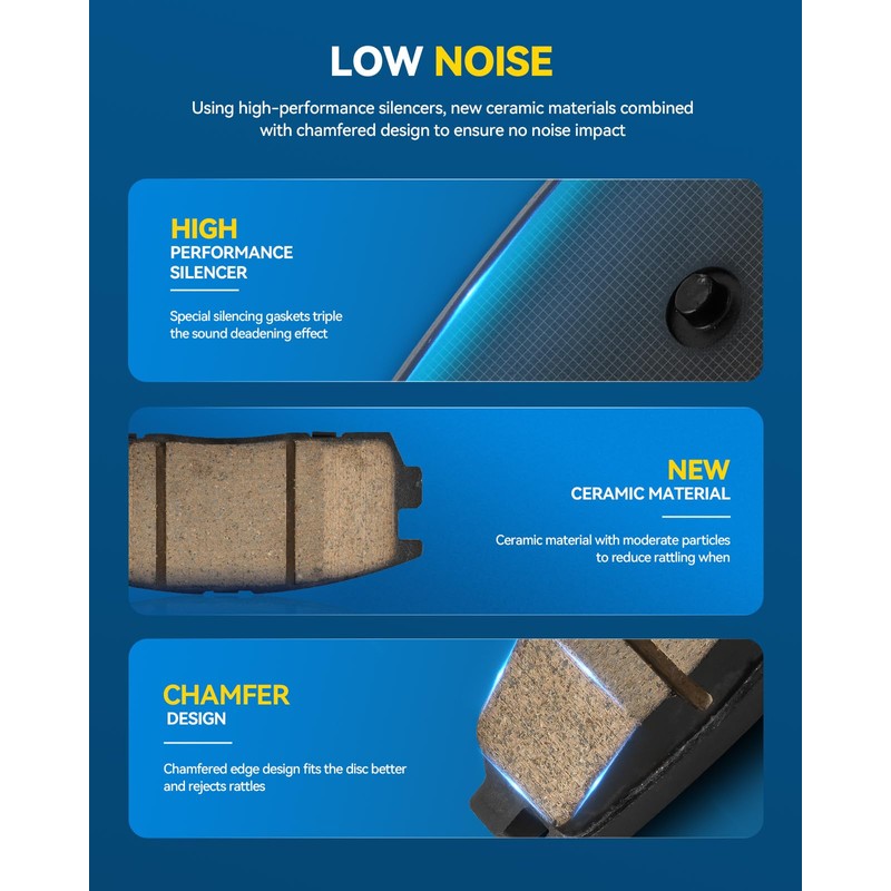 - [Customer Support]: 1 year unlimited mileage hassle-free return. The brake pads are brand new and sturdy, making it an ideal replacement. Please feel free to contact us if there is any quality problem with the product, such as damage or not suitable for your car.