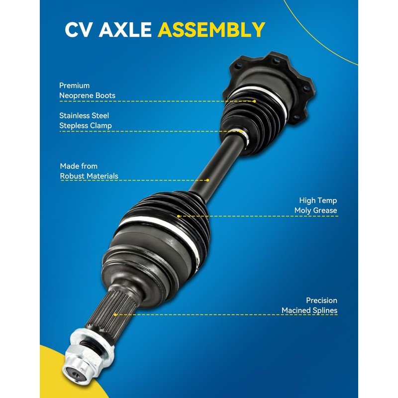 - Easy to install: Brand new cv axle shaft. Threads and splines are precision rolled for easy direct replacement.
