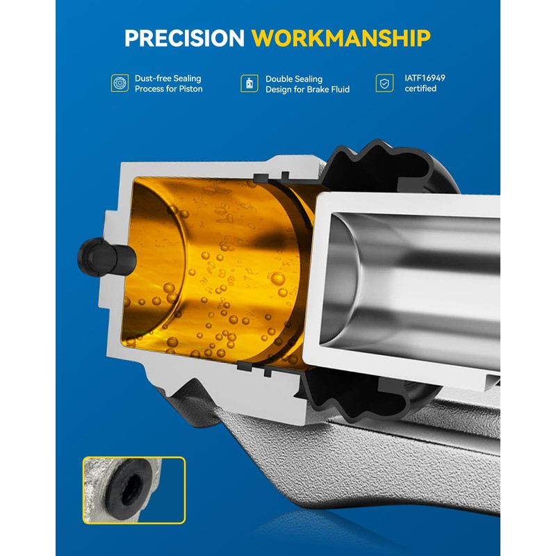 - OE specification disc brake caliper assembly, including brake caliper, bracket, phenolic piston, mounting hardware