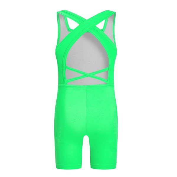 Phineein Girls Gymnastics Leotards Crisscross Back - Kids Sleeveless Ballet Dance Fancy Crossover Biketard, Lime Green, 6Y