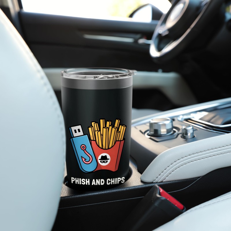Phish and Chips Funny Cybersecurity Cyber Hacking Hacker Stainless Steel Insulated Tumbler