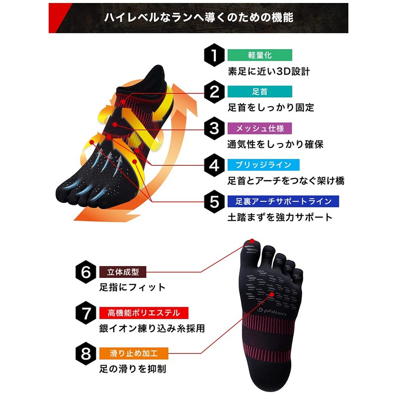 Phiten Socks, Socks, Racer, 5 Toes, Various Sizes
