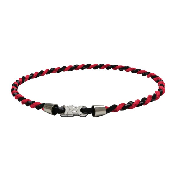 PHITEN Tornado Chrome Titanium Necklace, Black/Red, 18-Inch