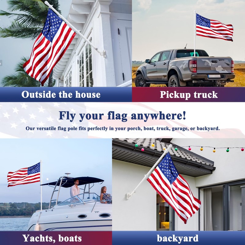 - MULTI-PURPOSE USE - Suitable for 2x3, 3x5, 4x6 Flag. The Best Flag Pole for your Patriotic Family Home, Porch, Garden or Office, indoors or for lawn outside, seasonal garden banners, Thanksgiving holidays and Christmas banners, welcome flags, indoor and outdoor celebration. It can be mounted on walls, yards, roofs or even trucks.