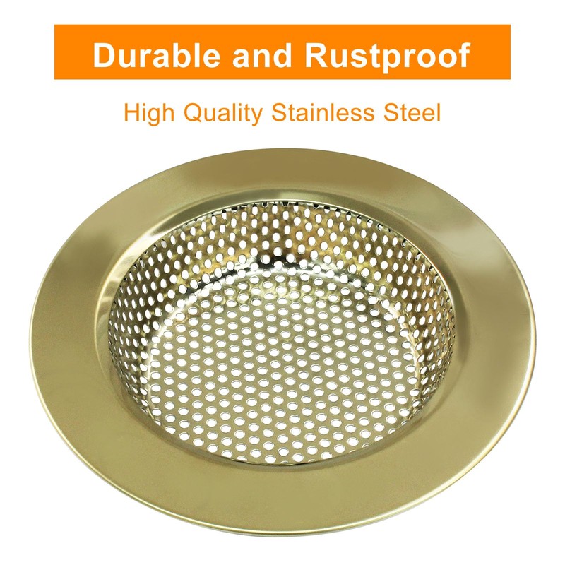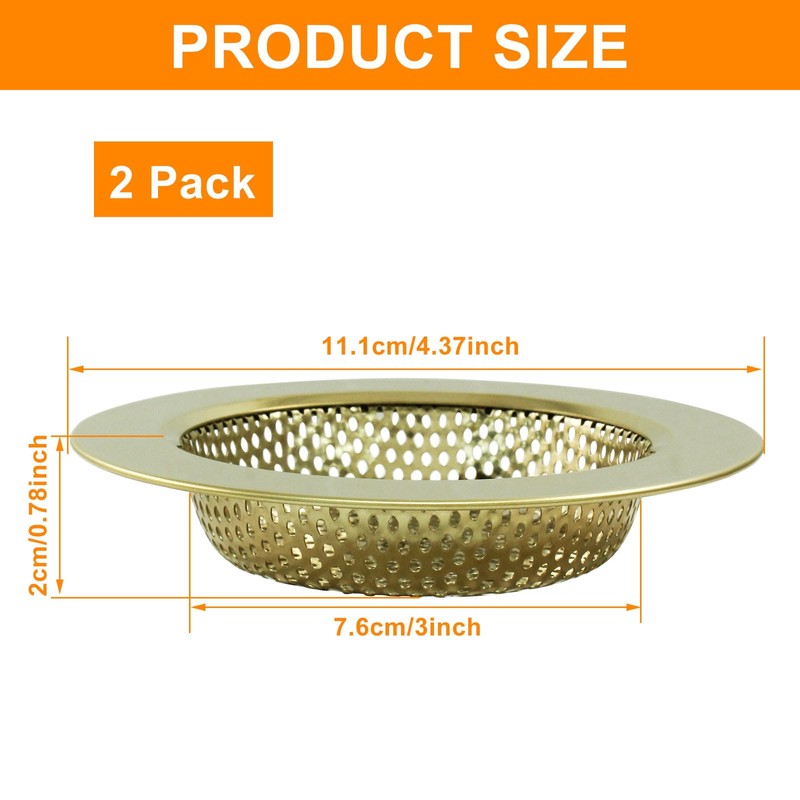 PHITUODA 2 Pcs Sink Strainer Stainless Steel Kitchen Sink Drain Strainer Basket Cover Mesh Hair Food Catcher with Large Wide Rim 4.4" Diameter, Gold